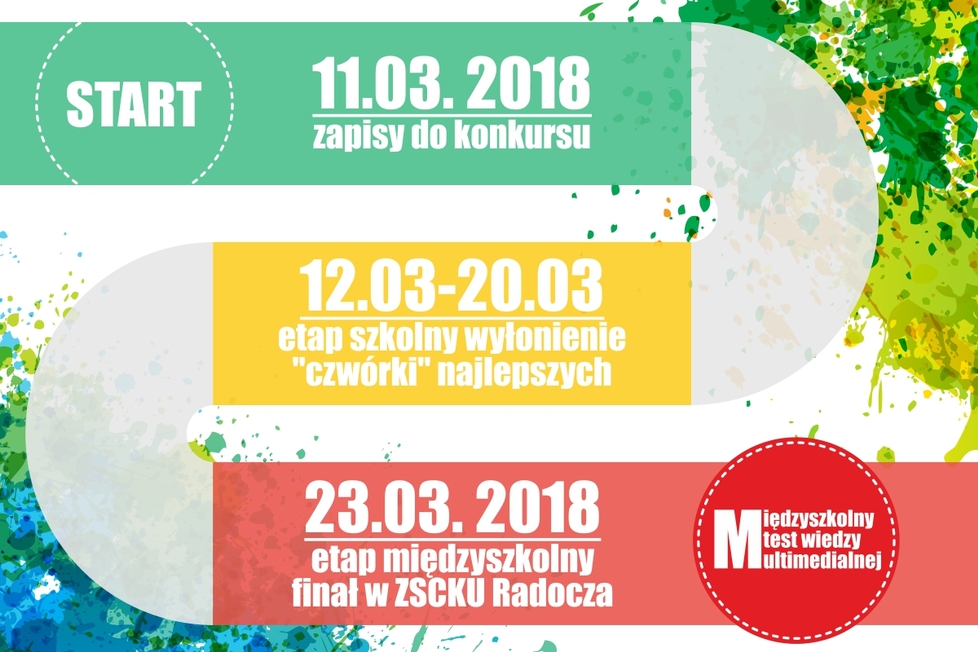 4. Cztery najwyższe wyniki etapu wewnątszkolnego otrzymają promocję do międzyszkolnego testu wiedzy, który odbędzie 23.03.2018 się w ZSCKU im. św. Jana Pawła II w Radoczy